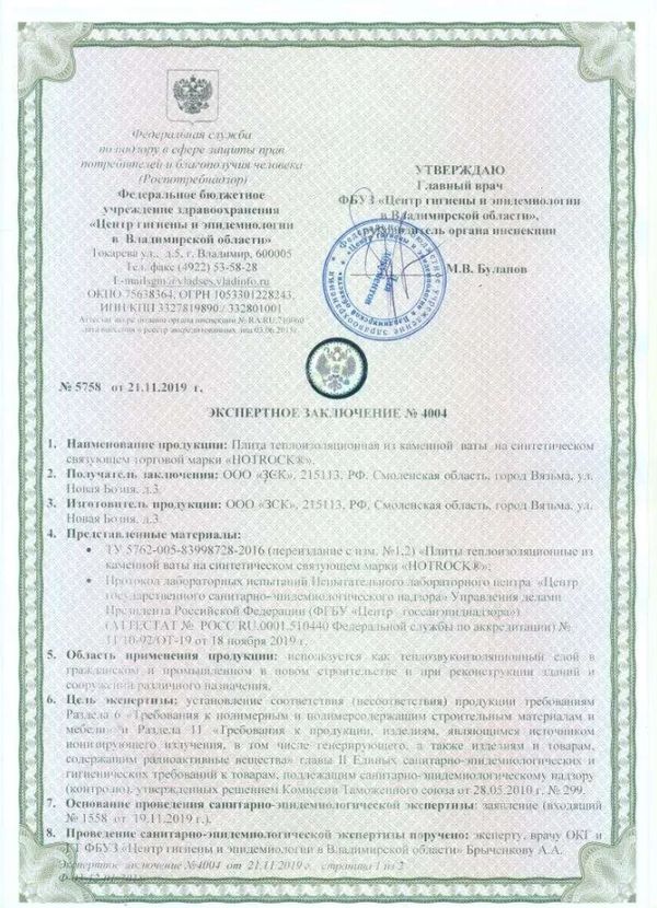 Базальтовая вата Hotrock Вент 150х600х1200 также отличается высокой огнестойкостью, что делает ее безопасным материалом для использования в строительстве. Она не горит и не поддерживает горение, что способствует повышению пожарной безопасности зданий.